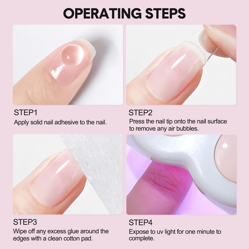 3.Solid nail gel must be used with UV light, otherwise the glue will not set.
