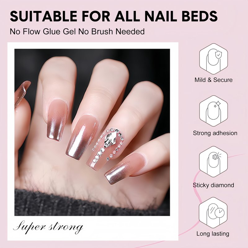 1.Solid nail gel has strong adhesion after drying, durable, can stick the nail tip, can make rhinestones, pearls, glitter and other nail decoration.
