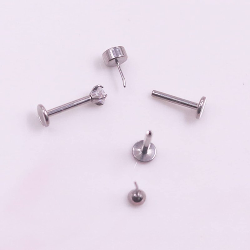 - Product Style:3PCS CZ Top Push in Threadless G23 Titanium Flat Back Stud for Nose.If the product is loose, insert the upper end into the base and bend it slightly.