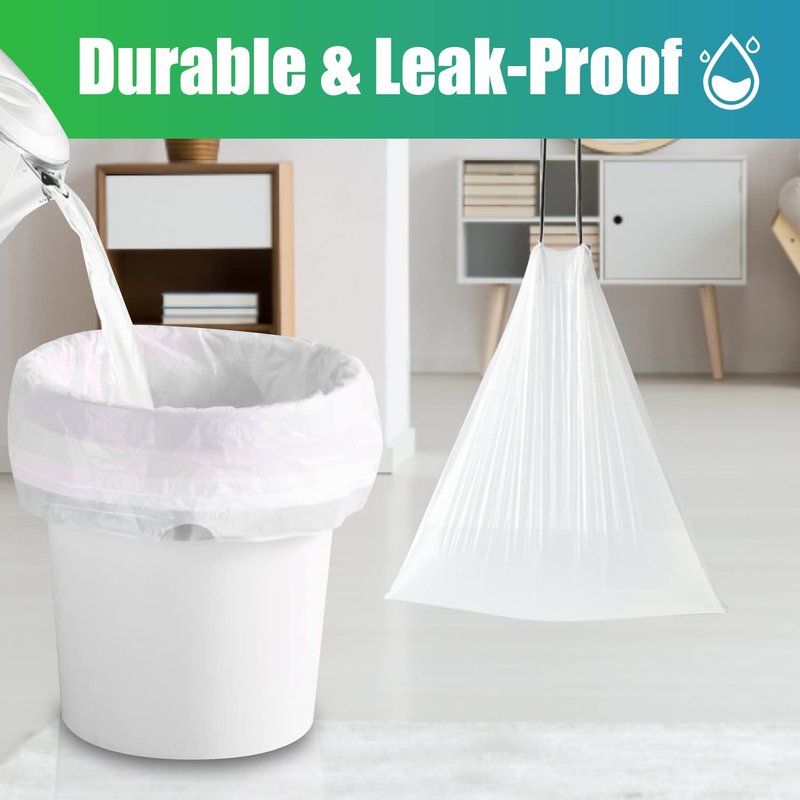 - Drawstring Design - For the convenience of throwing, the 4 gallon trash bags are designed with durable drawstring ties. It makes our trashbags easy to tie up and throw out.