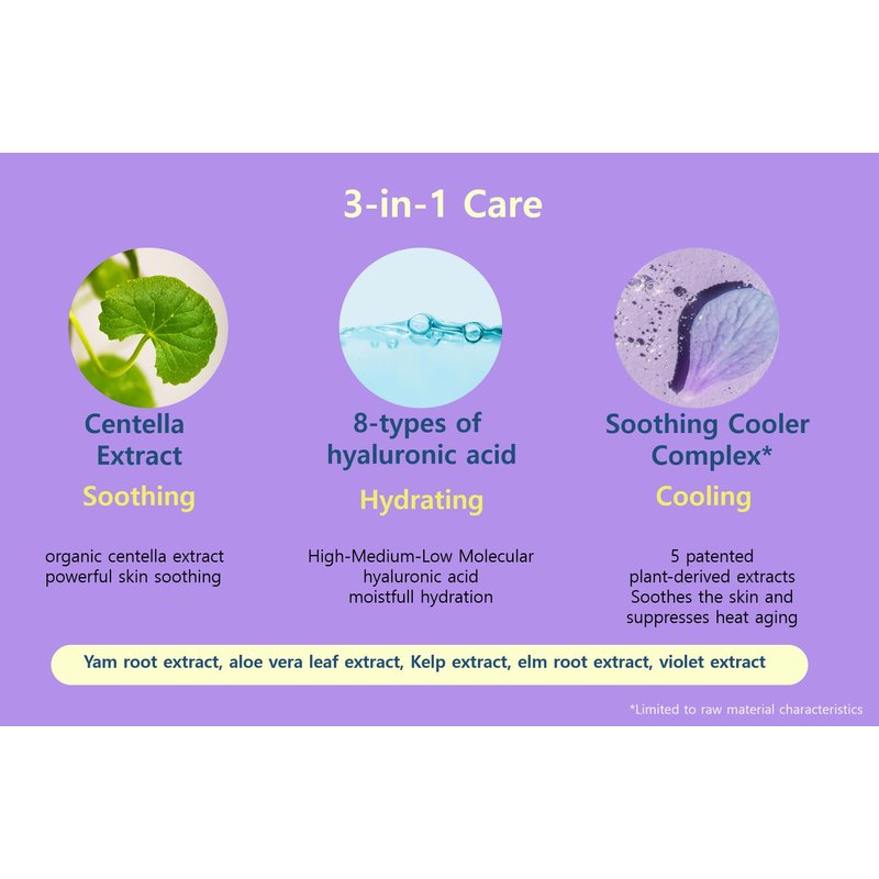 - ✅ [ Centella Asiatica – Soothing] Contains 50% organic Centella asiatica extract grown in clean areas in Korea. [ 8-Layer Hyaluronic Acid – Moisture & Cooling ] Large-medium-small Hyaluronic acid moisturizes outside and inside of the skin, provides moisture and improves skin elasticity.