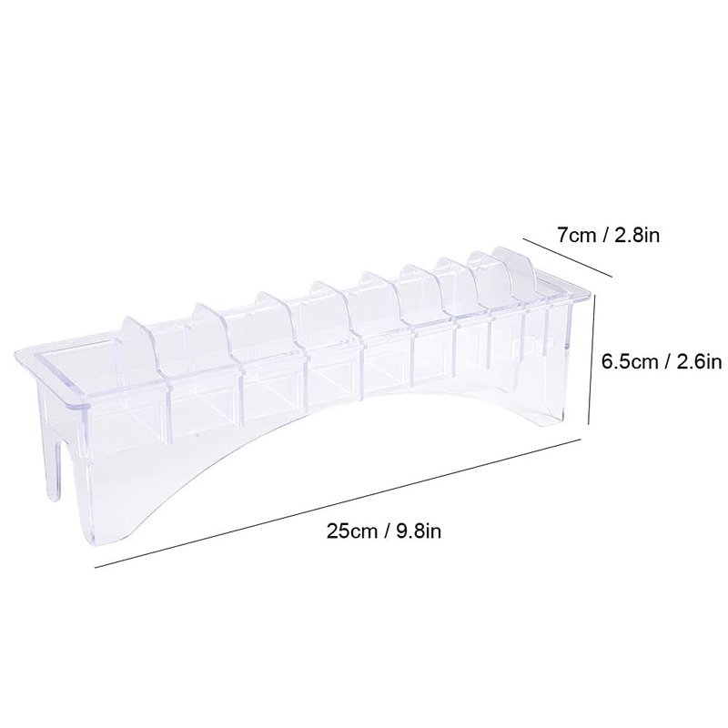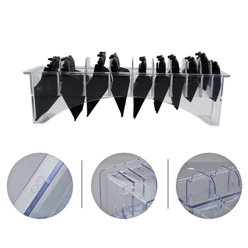 - Space Saving: The base of 10 compartments can collect 10 different types of hair clippers, making it easy to operate. Keep the hair comb neat and tidy in the clipper guard holder. Meanwhile, stylists can easily obtain anything they need while working