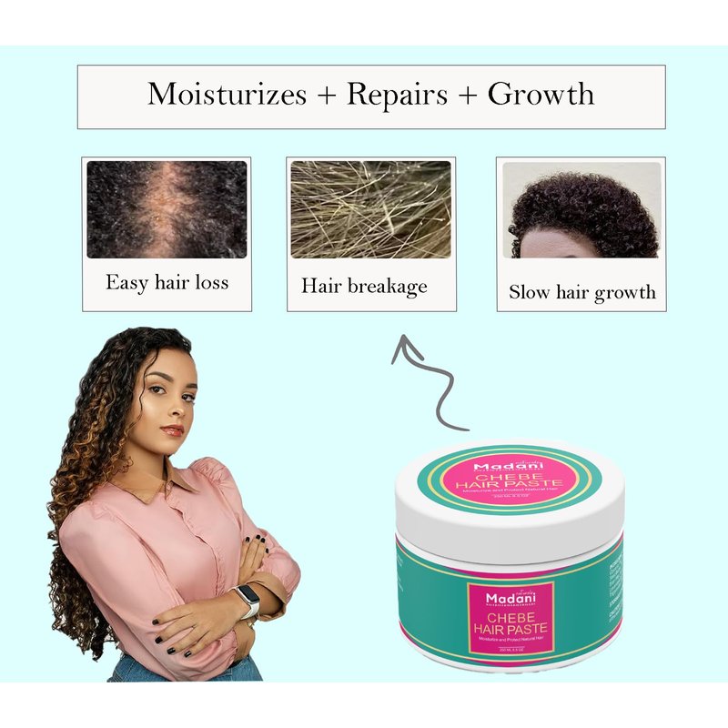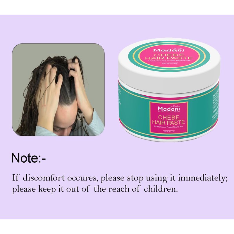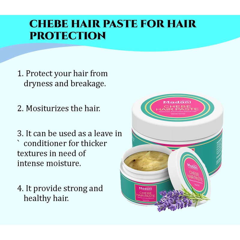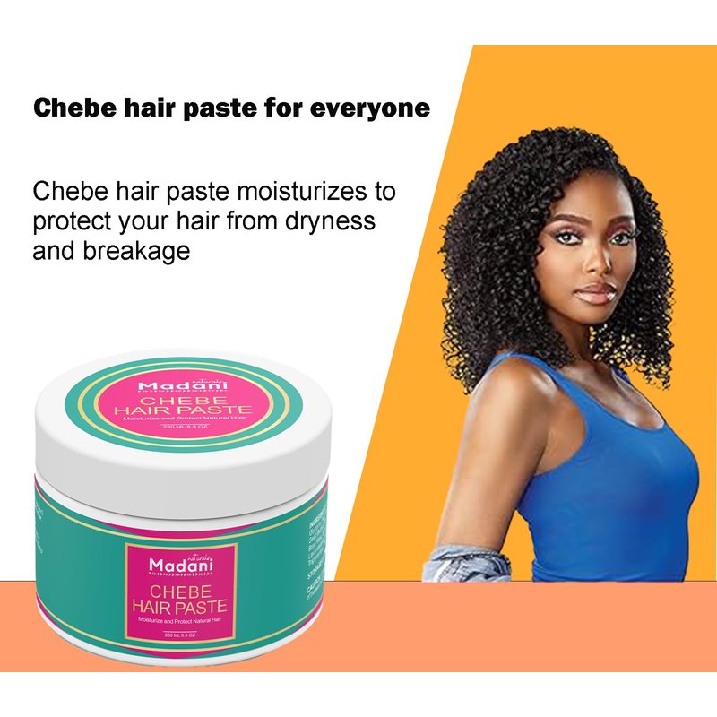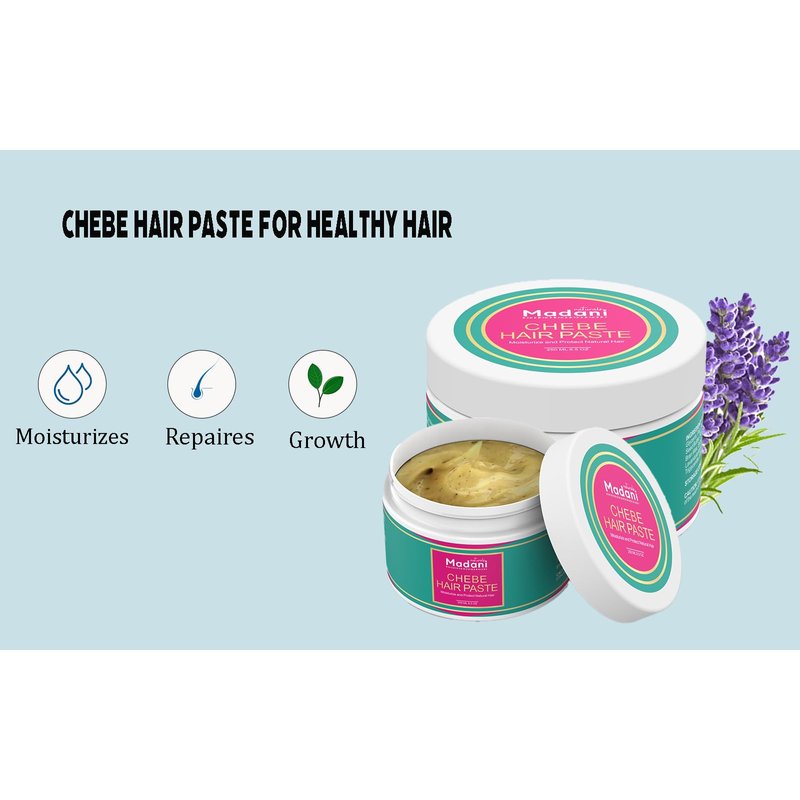 - Moisturizing and Nourishing: The Madani Chebe Hair Paste moisturizes to protect your hair from dryness and breakage so you can enjoy strong healthy hair. The rich and creamy texture of our hair paste provides intense hydration to your hair and scalp, leaving it soft, silky and manageable.