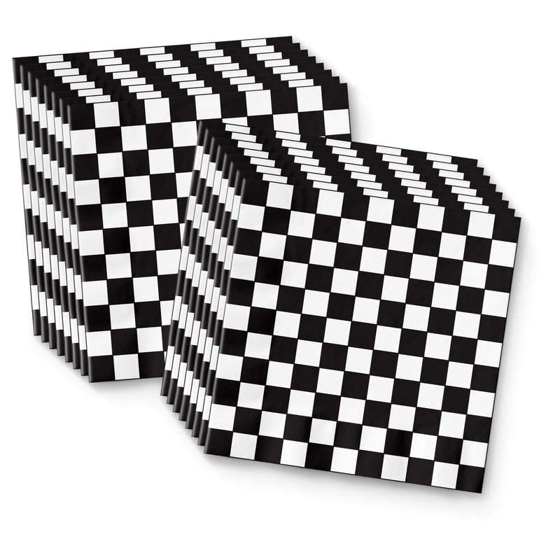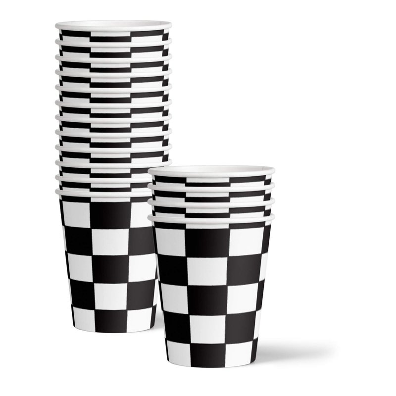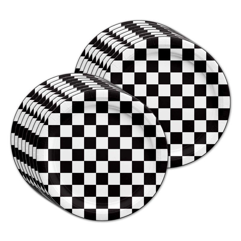 Checkered Flag Party Supplies - Black and White Checkered Party Supplies - Race Car Theme Party | Tableware Set Includes Plates Napkins and Cups | Kit for 16