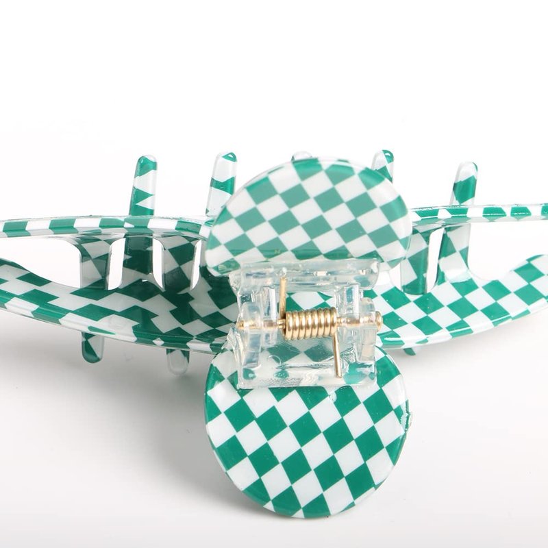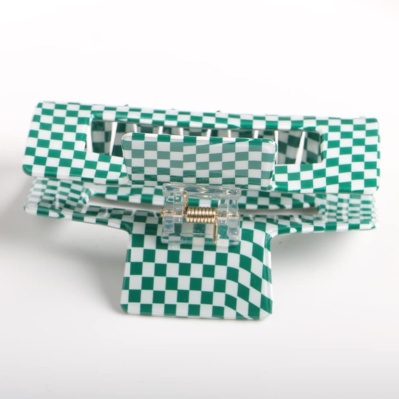Checkered Hair Claw Clips,Pack of 3,Vintage Green/White Checkered Claw Clips Cellulose Acetate Banana Clips,Nonslip Hair Clamp for Women Girls (Green)