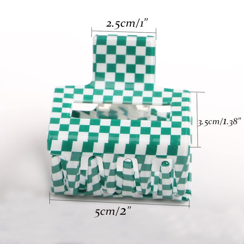 - (1).Vintage Checker Design :Vintage Checkered Claw Clips Design looks Simple, elegant and beautiful;Adding more charm and cuteness for your hairstyle;size(Length-5 cm/2";9.5 cm/3.74";10 cm/3.94"):Package included:3 pcs x checkered claw clips
