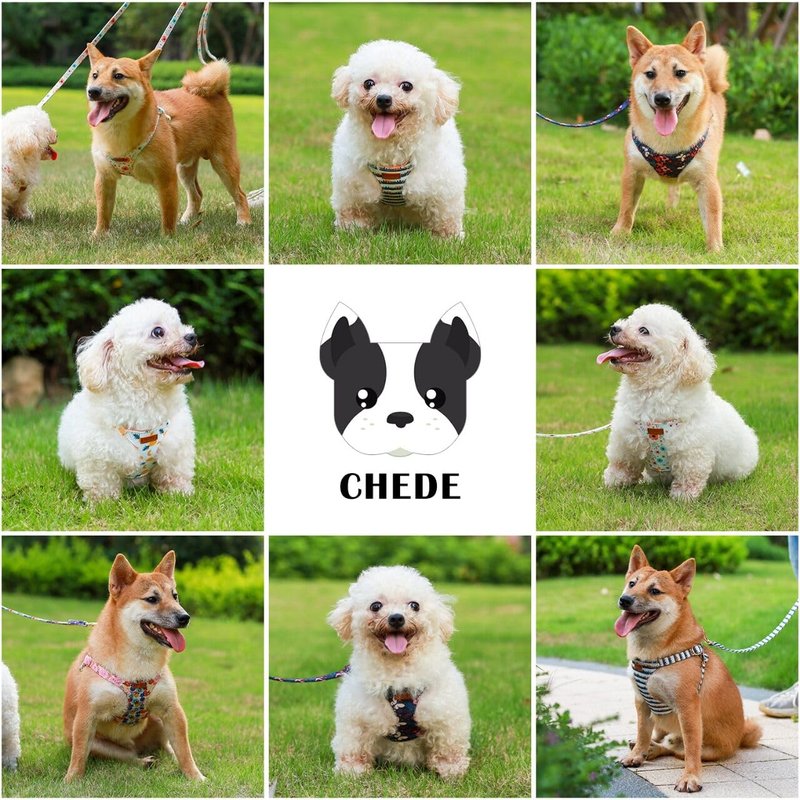 CHEDE No Pull Floral Pattern Dog Harness- Lightweight and Soft Dog Harness, Adjustable Small Dog Harness and Leash Set, with Dog Leash, Suitable for Puppy Small and Medium-Sized Dog