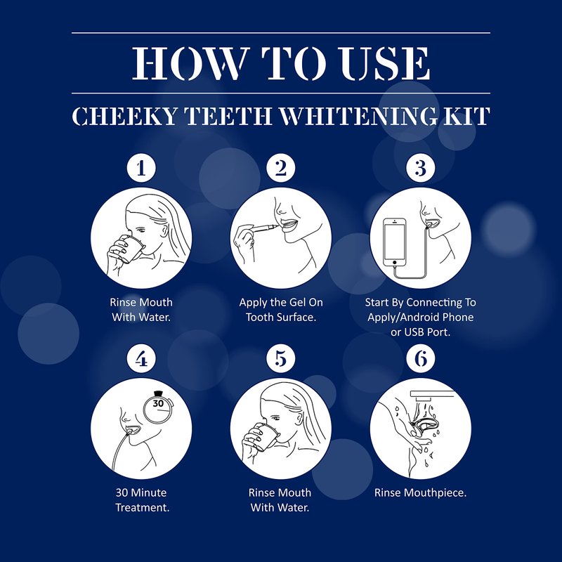 Cheeky LED Teeth Whitening Kit with Whitener Gel and Mouthpiece, DIY Home System to Diminish Stains and Discoloration, Dental and Enamel Safe