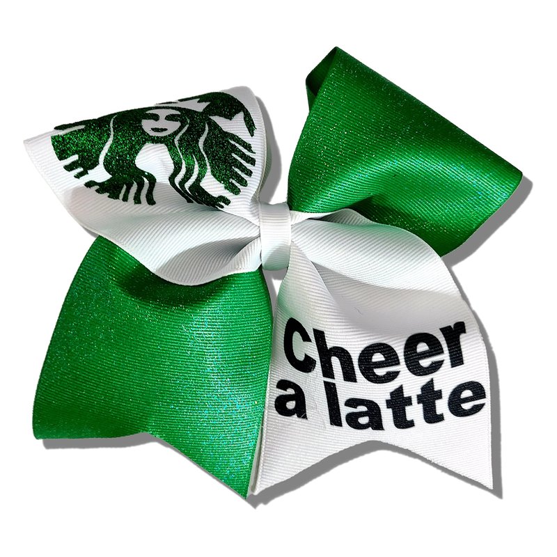 Cheer Bows White and Sparkly Sequins Green Cheer a Latte Glitter Bling Hair Bow