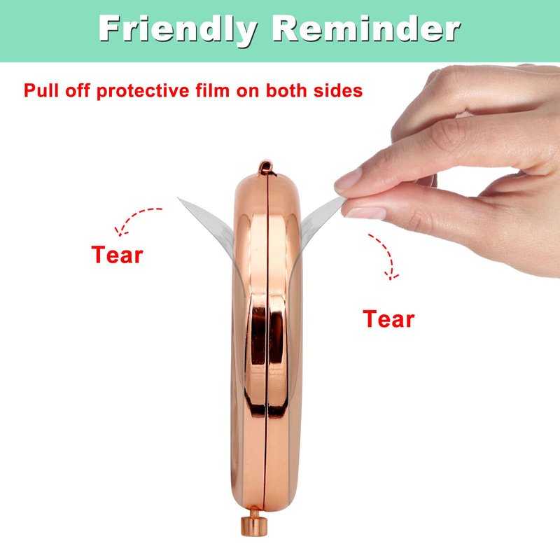 - Portable Compact Makeup Mirror:Mirror is shipped with a protective film to protect it. when it arrives,you can tear off the film, the font and pictures will be seen more clearly. 1 side is a standard mirror to help ensure that your lipstick, eyeliner and hair are in perfect condition and the other side is a magnifying mirror, an exceptionally clear image without distortion. Make sure the girl is getting the perfect look, and also allow her to check the tiniest details of your makeup.