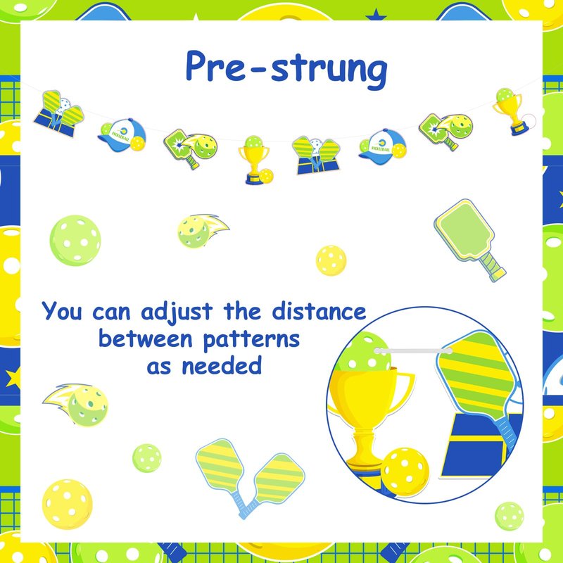 - Pickleball Design: Both happy birthday banner and garlands are specially designed with a variety funny pickleball elements, such as ball, racket, golden trophy that will definitely add more fun to baby’s birthday party.