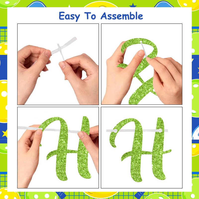 Package Includes: 1 x pickleball birthday banner 1 x pickleball birthday garland Material: cardstock, glitter paper Occasion: birthday party Color: green
