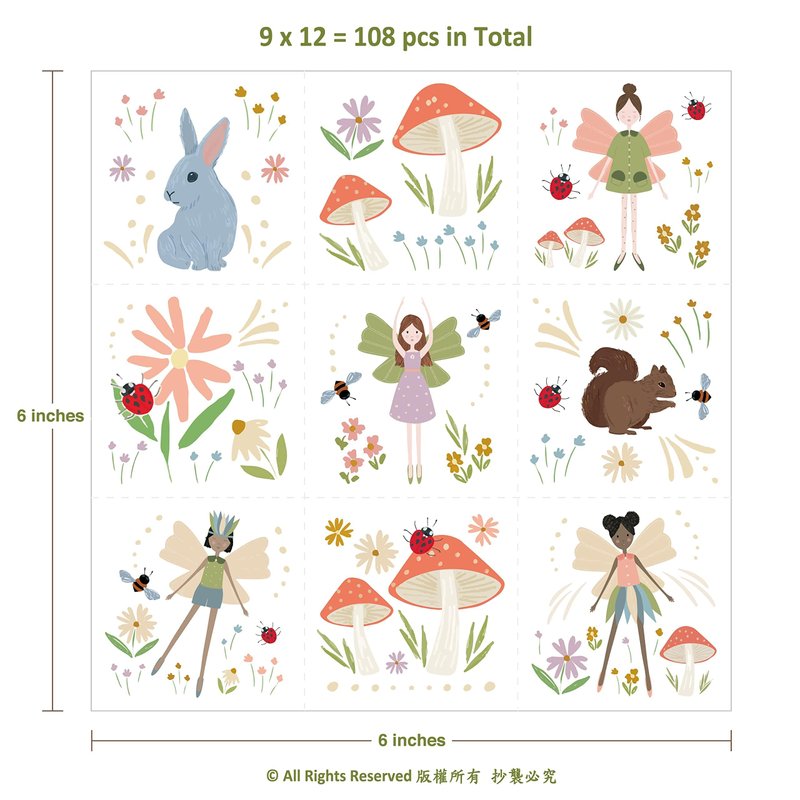 - Whimsical Pastel Woodland Fairy Design: Each tattoo sheet features a magical Woodland Fairy and animal theme with adorable temporary tattoos; Designs include rabbits, mushrooms, four beautiful fairies, and squirrels, creating an enchanting atmosphere for girls' birthday parties and imaginative play