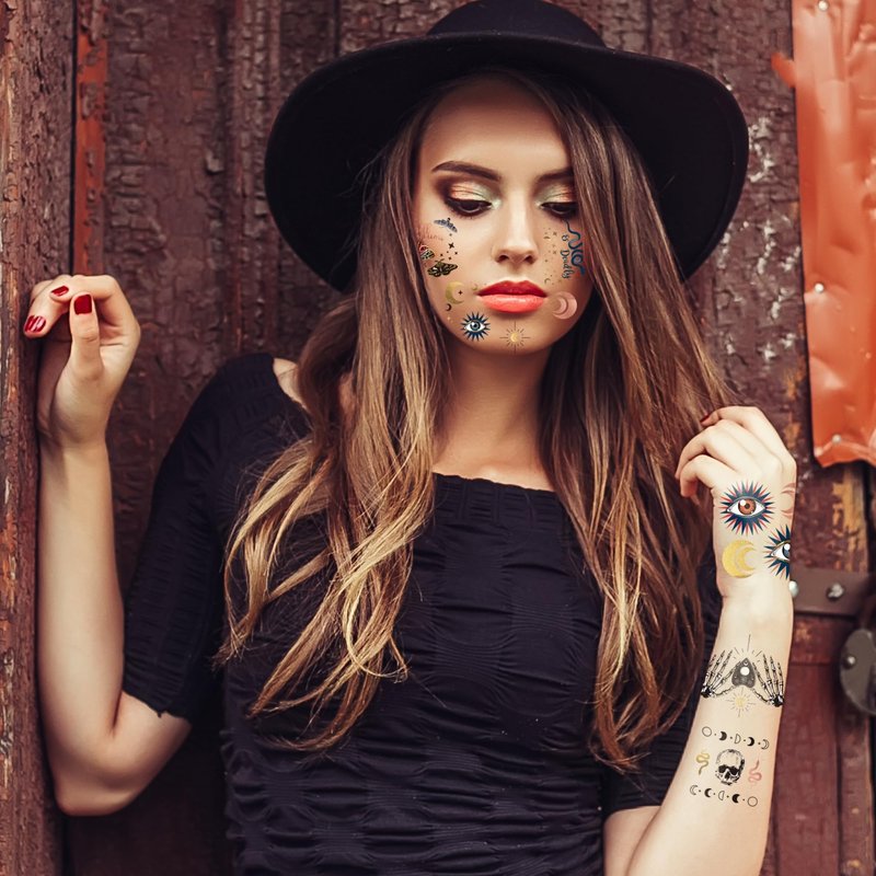 - [Events and Occasions]: Perfect for Halloween costumes, music festivals, or themed gatherings. Let your creativity soar with these captivating tattoos, adding bohemian charm and intrigue to any event or celebration.