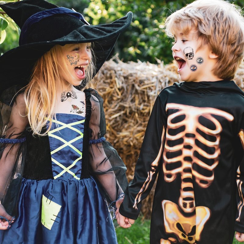 Applying our Boho Halloween tattoos is quick and easy. Simply cut along the dash lines, choose your desired tattoo, place it on clean, dry skin or any smooth surface, and press it down gently. To remove, gently peel off the tattoo or wipe with a damp cloth. These high-quality tattoos will last throughout your event and can be easily removed without leaving any residue.