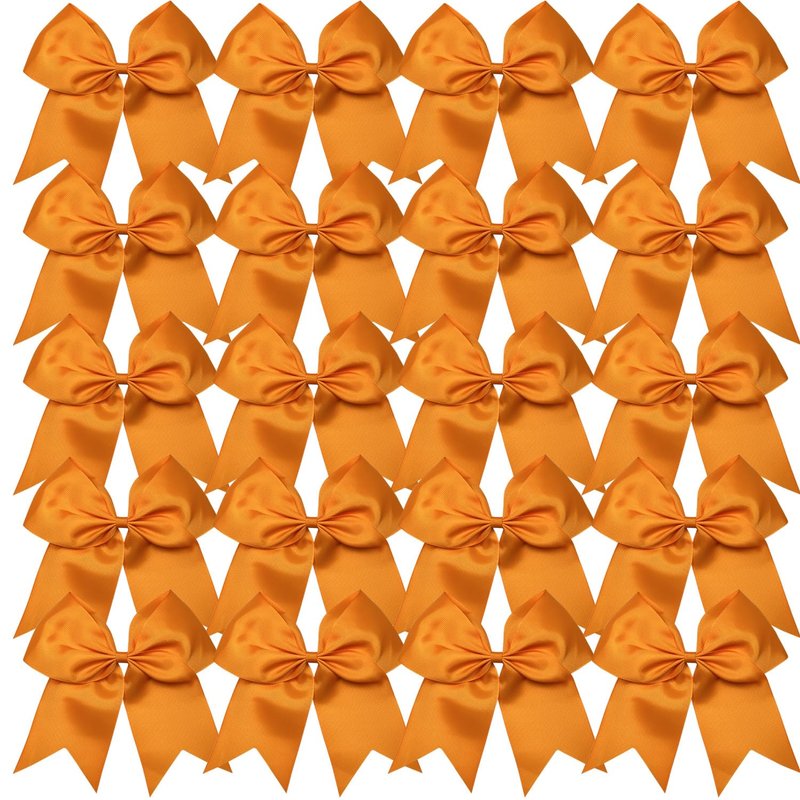 Cheerleader Bows 8 Inch 20 pcs Ponytail Holder Cheerleading Bows Hair Tie (Orange)