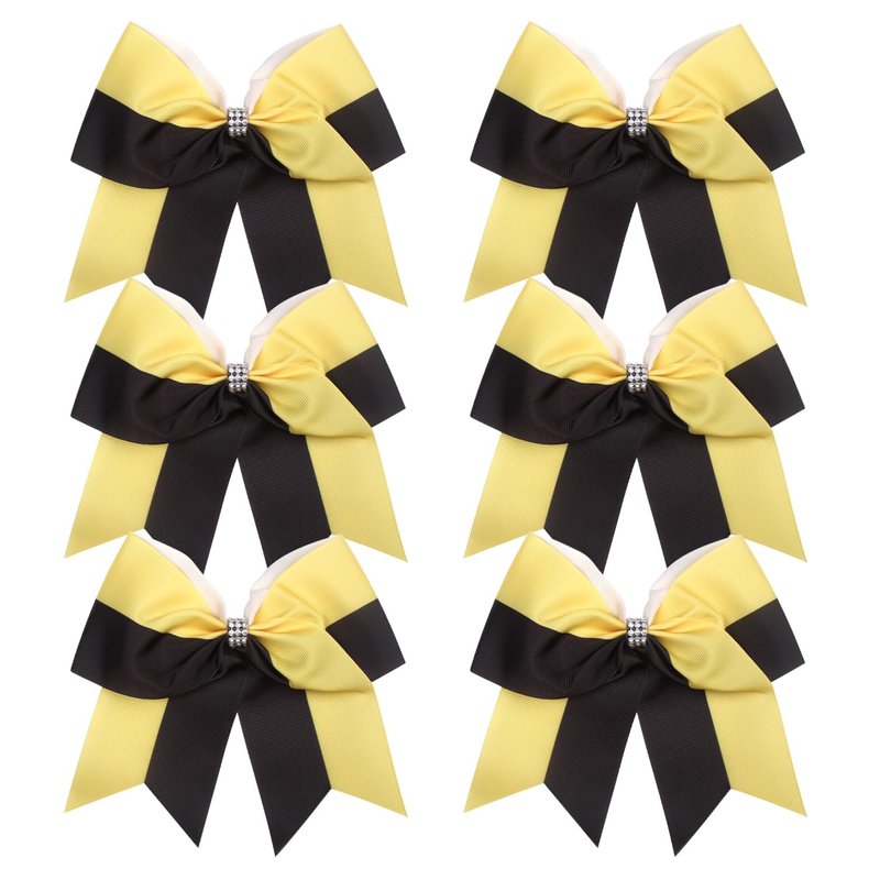 Cheerleader Bows 8 Inch Comb Color Ponytail Holder with Bling Fling Rhinestones Hair Tie Cheerleading Bows 6 Pcs (Yellow/Black)