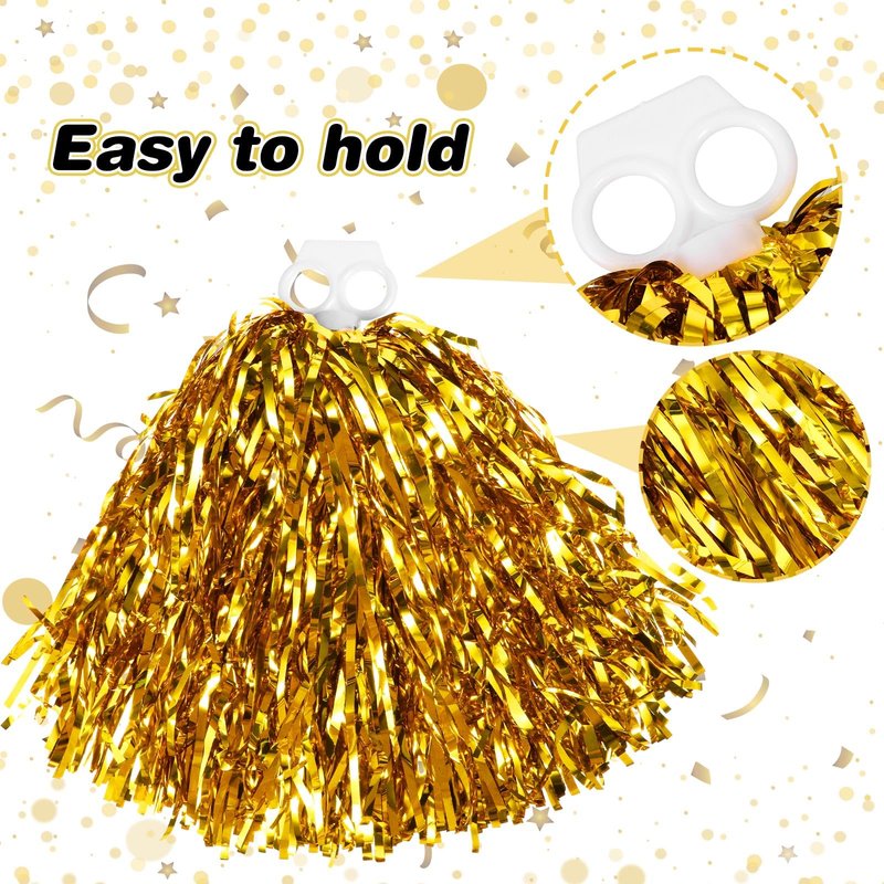 - Sufficient to Use or Share: the package contains 4 pieces of cheerleading pom poms in bright gold color, designed with plastic ring handles, enough to meet your cheering needs, and you can share them with cheerleaders