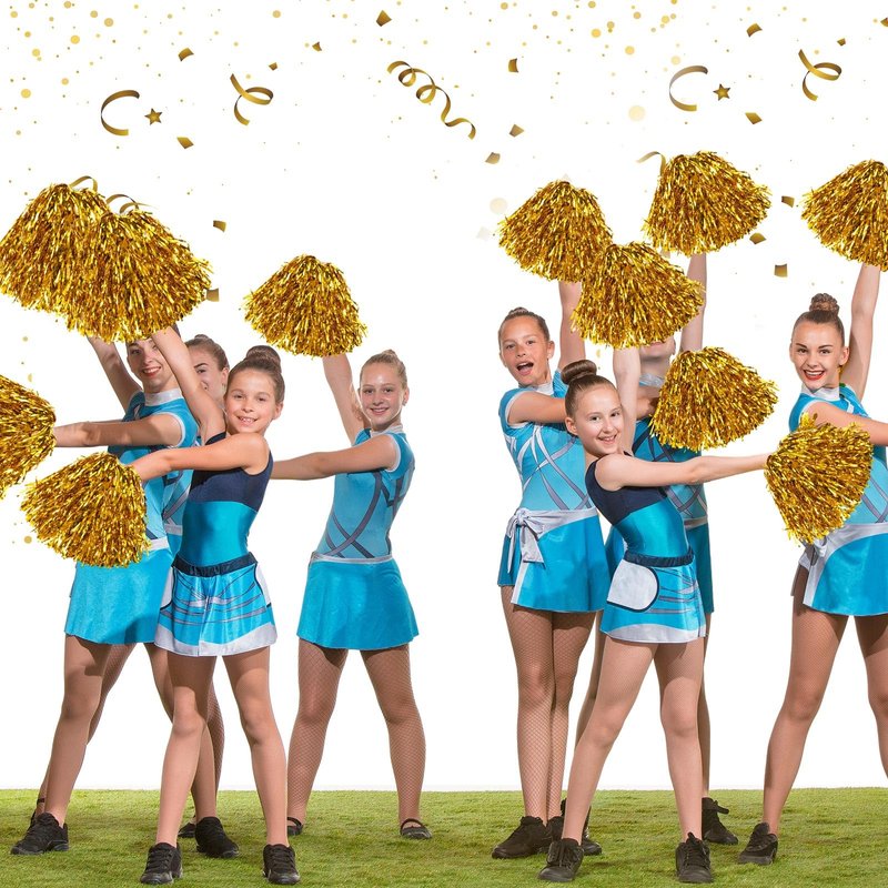 Cheerleading Pom Poms 4 Pack Cheerleader Squad Spirited Fun Pompoms Pom Poms Cheer Poms Hand Flowers Metallic Foil Pompoms for Kids Adults Sports Team Spirit Cheering Party Dance (Gold)