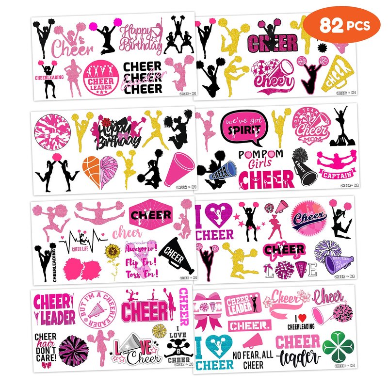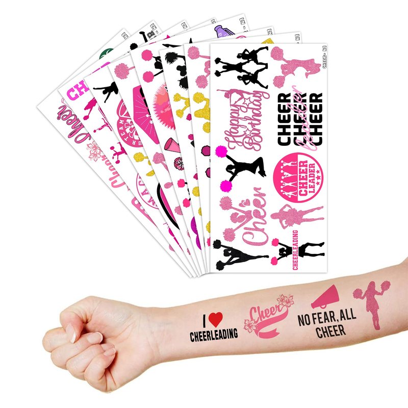 - Including 8 sheets tattoos with various styles, sufficient in quantities and colors to meet your daily requirement of using and sharing. You guys can easily use this set of Cheerleading temporary tattoos and take unique photos to make fond memories.