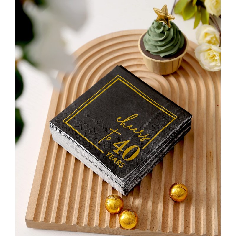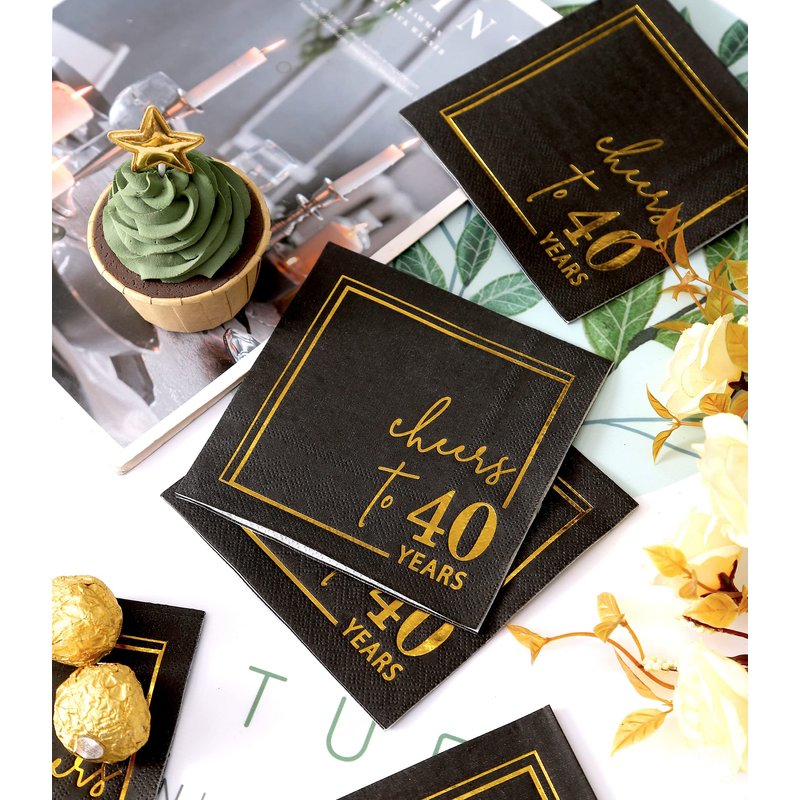 Cheers to 40 Years Cocktail Napkins - 50PK - 3-Ply 40th Birthday Napkins 5x5 Inches Disposable Party Napkins Paper Beverage Napkins for 40th Birthday Decorations Wedding Anniversary Black and Gold