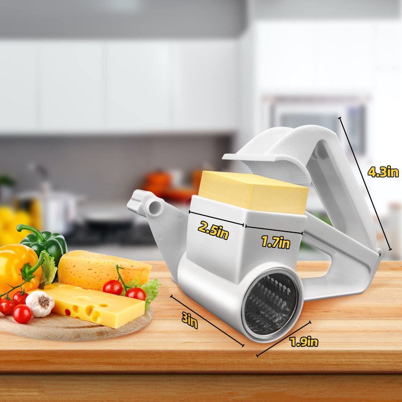 - 🧀Easy to use: Just put the food into the cheese grater with handle, press lightly on it, and turn the handle to shred the food easily