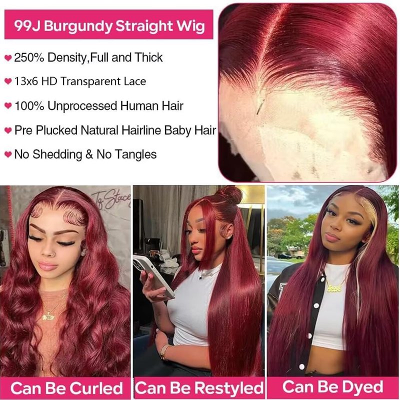 - 【99J Straight Wig Material】10A grade 100% unprocessed brazilian virgin human hair,it was cut from the head of young girls,then washed and sorted, retaining their natural quality and elasticity.can be straightened,curled,bleached,dyed,and restyled to your want.