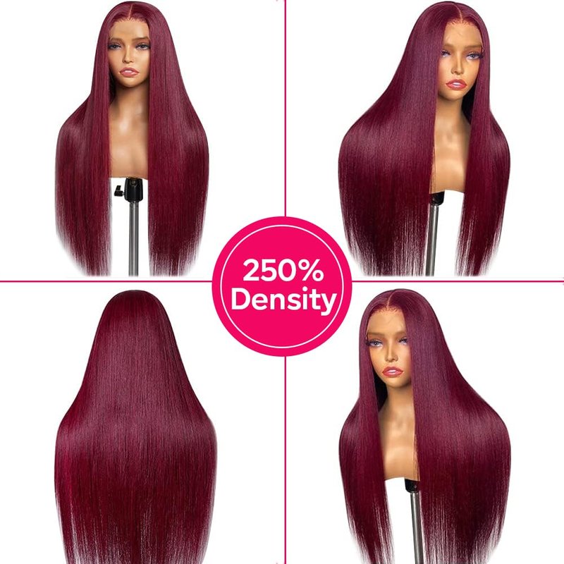 CHEETAHBEAUTY 99J Burgundy 13X6 Lace Front Wigs Human Hair 250% Density Straight Human Hair Wigs HD Transparent Lace Front Wigs for Black Women with Bleached Knots Natural Hairline (24inch)
