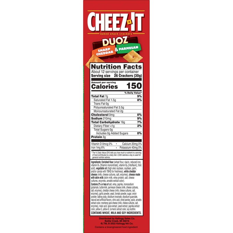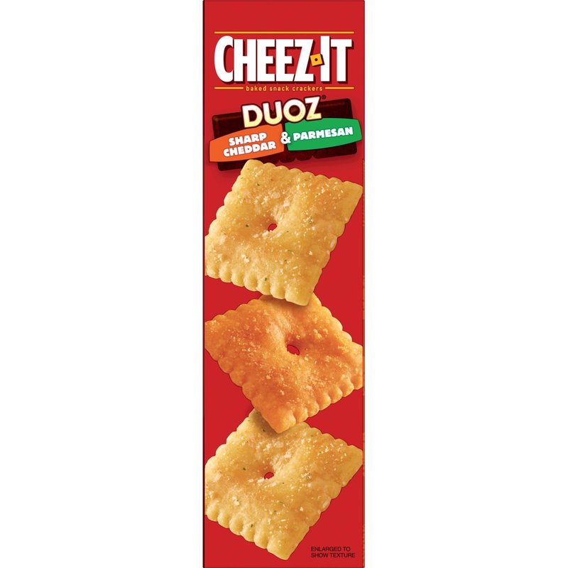 - Discover sharp cheddar and rich parmesan satisfaction with each and every Cheez-It Duoz cracker; Combined for a mix of cheesy goodness in every box