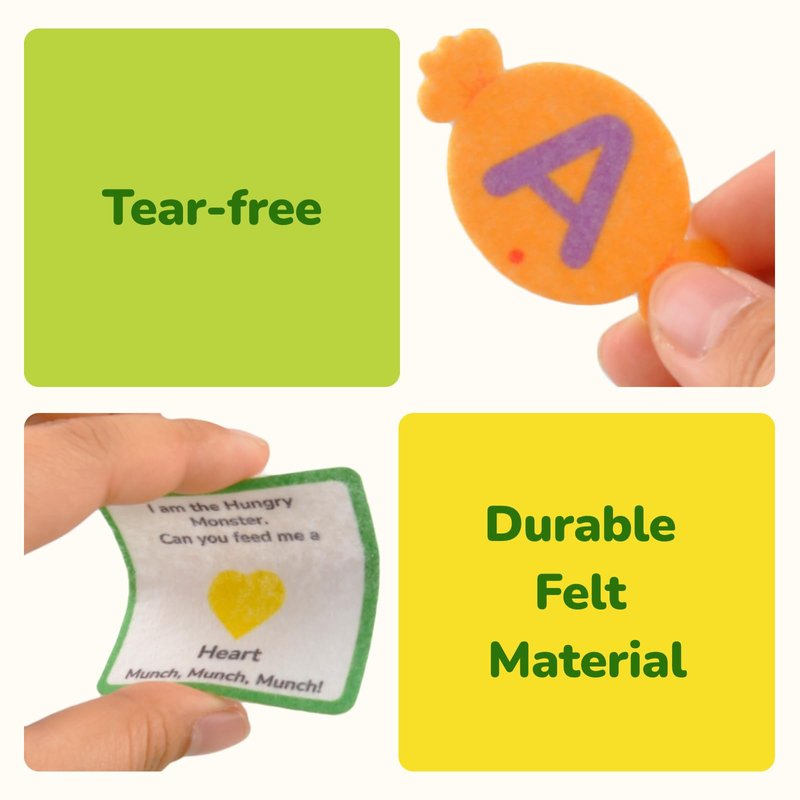 - Convenient to Carry&Store:You don't have to worry about losing the felt cards with the alphabet-shaped color candies of the little monster. We provide a storage bag as a gift, making it easy to store in the storage box and convenient to carry for travel.