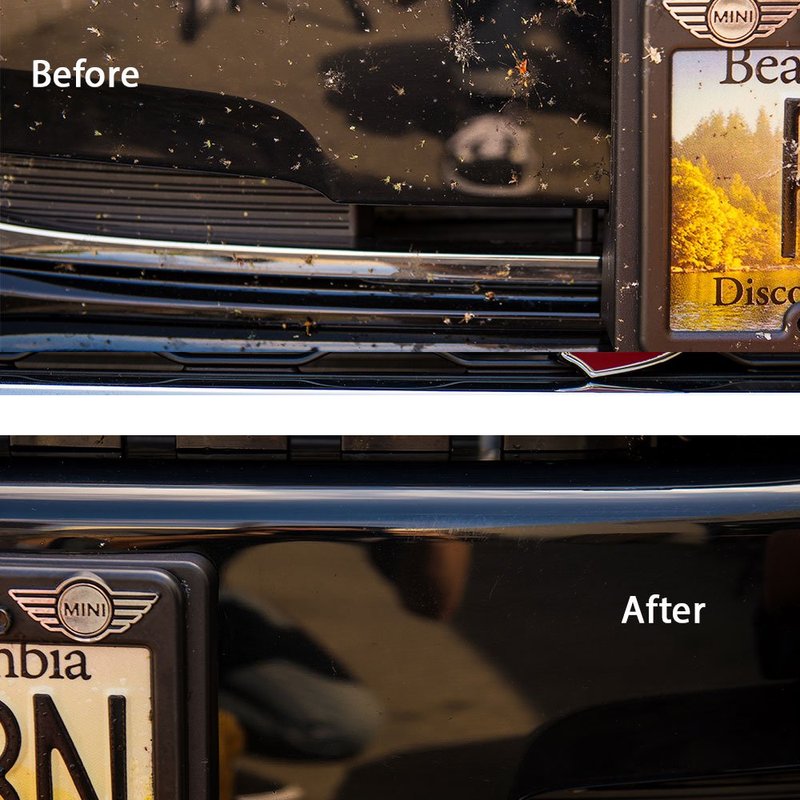 - Safely removes bugs, tar, grime, tree sap and bird droppings