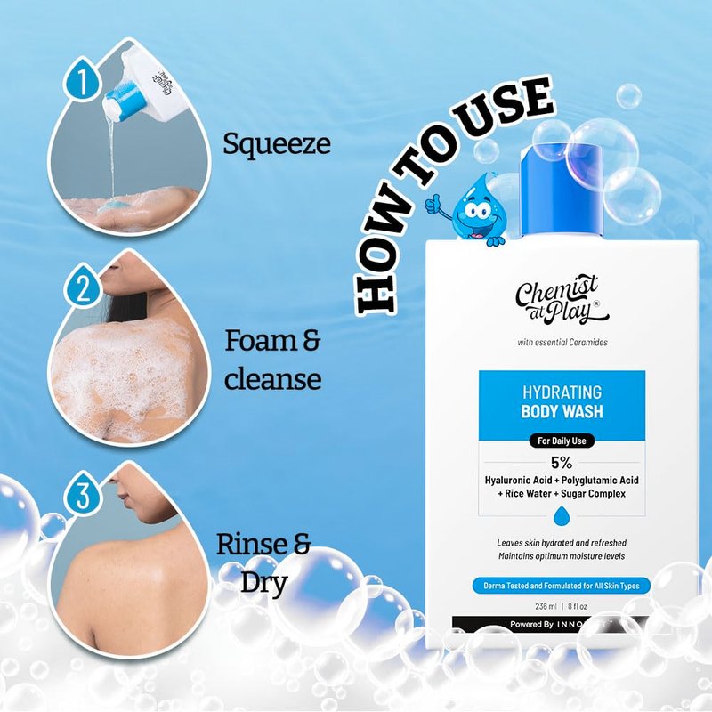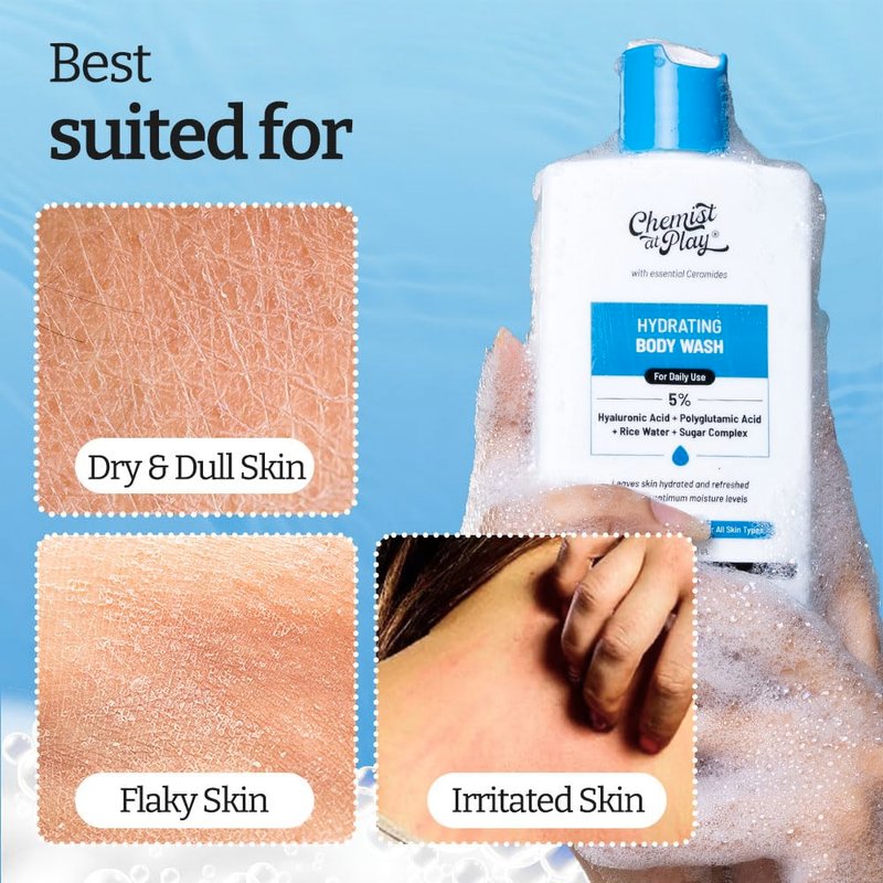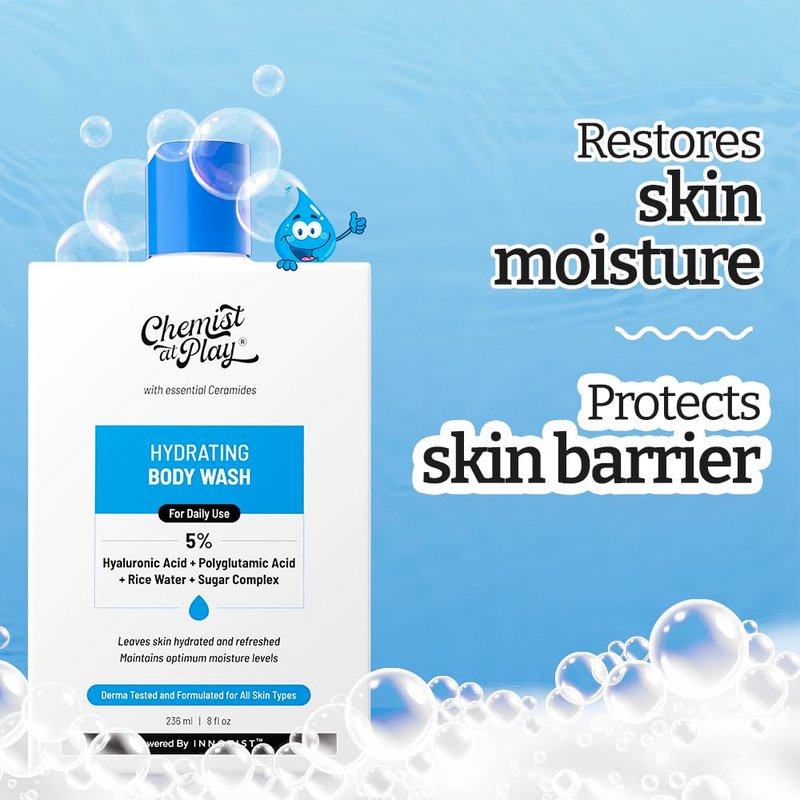 Chemist at Play Hydrating Body Wash | With 5% Hyaluronic Acid Bodywash for Intense Hydration | Reduces Flakes & Itchiness | For Dry Skin | Polyglutamic Acid & Hyaluronic Acid | For Women & Men | 236ml