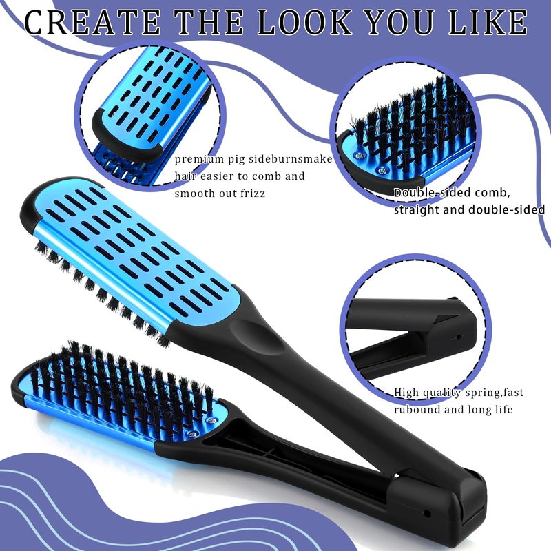 - Practical Tools: featured with the double sided design, the boar bristle straightening brush applies the clamp shape, which offers much convenience for you to straighten your hair; And when you are using a flat iron, the V shaped styling hair comb can protect your hands from scald, by helping fix your hair in place