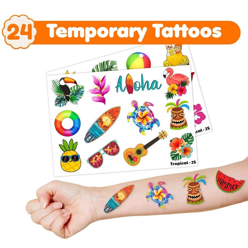 - Style: Tropical Temporary Tattoos; Birthday Party Supplies; Birthday Decorations; Party Favors; Beach, Summer, Hawaiian Luau, Aloha