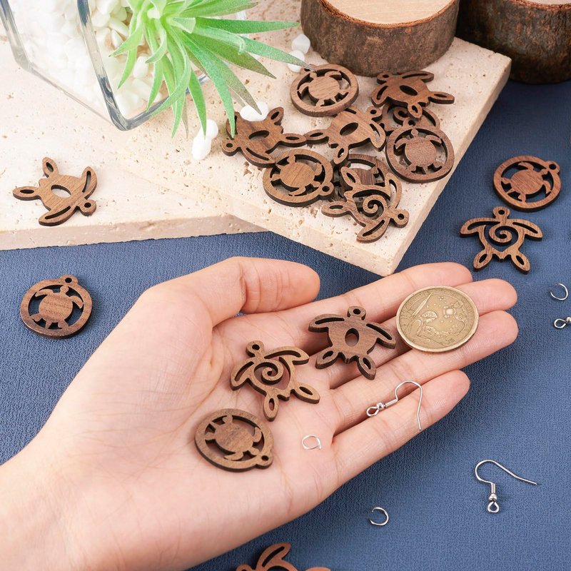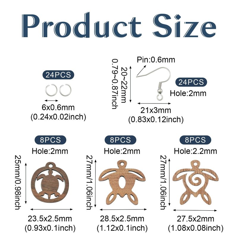 - 【Turtle Earring Set】-- Total 72Pcs/box, including 24pcs turtle wood pendants, 24pcs stainless steel jump rings, 24pcs stainless steel earring hooks. Also comes with a plastic box for your easy storage. Detailed size can see the picture description.