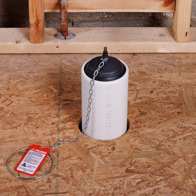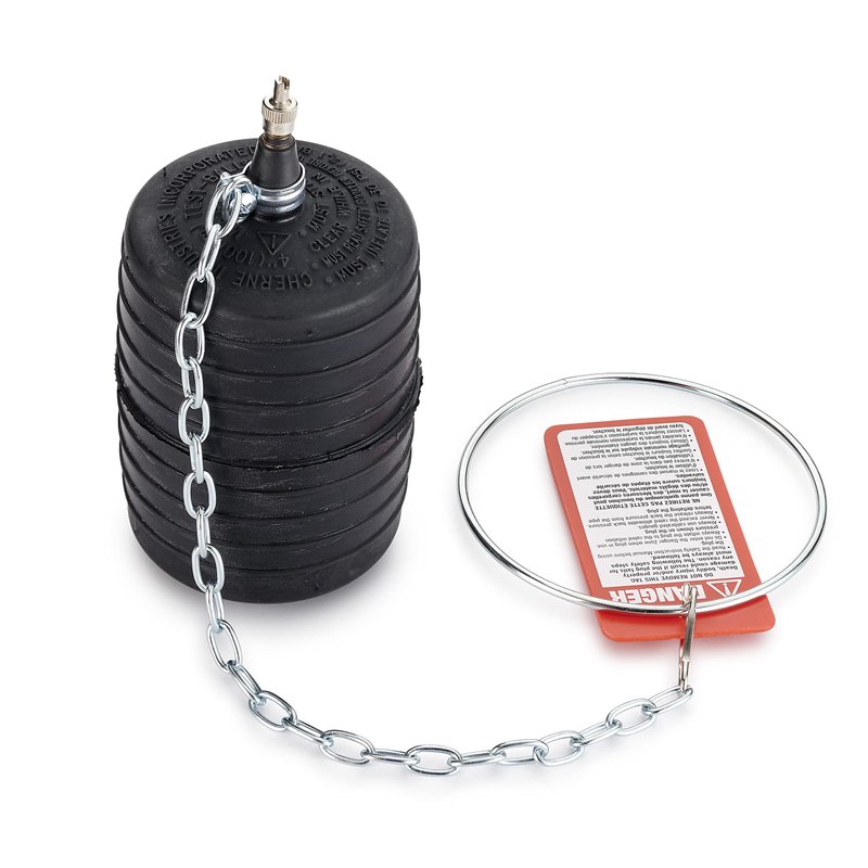 - Ring and chain assembly helps prevent the plug from being drawn into DWV systems during tests