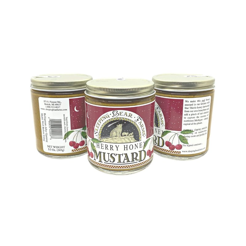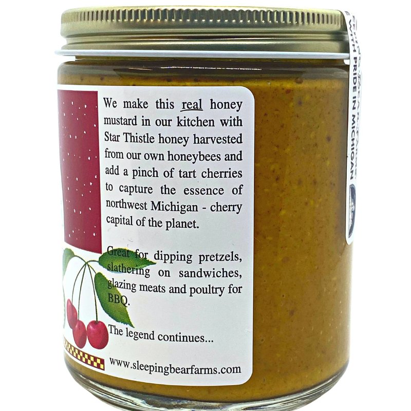 Real honey mustard! No sugar. Just honey, mustard, vinegar, and spices. Great as a dip for veggie sticks or pretzels or right out of the jar and onto your favorite sandwich! Try glazing your favorite meats for baking or grilling too! Its best on pork and chicken. Uses all-natural Michigan honey from our bee farm and locally grown cherries for a hearty, healthy, all-natural taste.