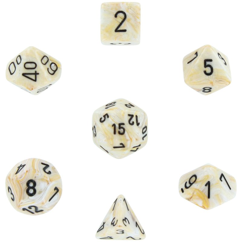 Chessex Dice: Polyhedral 7-Die Marble Dice Set - Ivory with Black