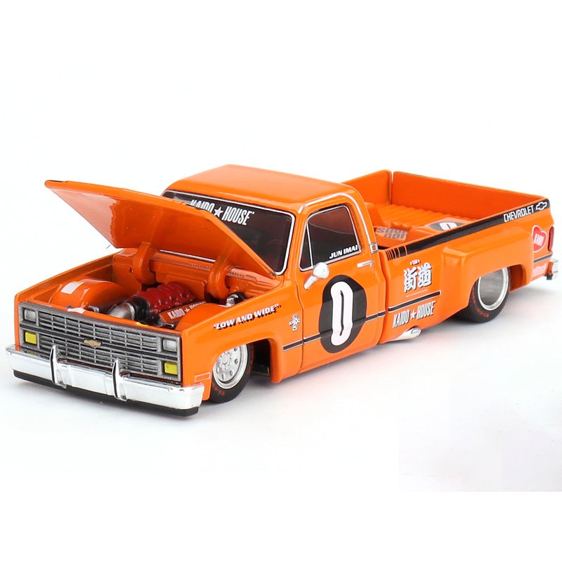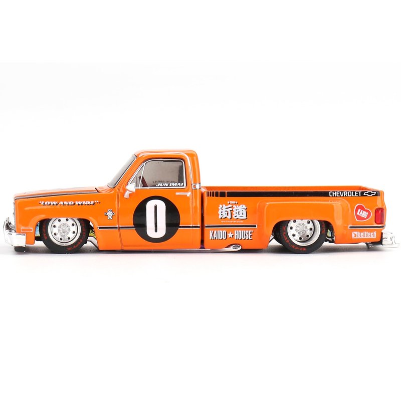 Chevy KAIDO Works V2 Pickup Truck #0 Orange with Graphics (Designed by Jun Imai) Kaido House Special 1/64 Diecast Model Car by True Scale Miniatures KHMG090