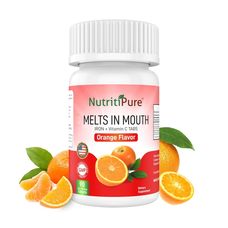 NutritiPure's Iron plus vitamin C is pleasant tasting Orange flavor tablet that melts in mouth. Each bottle contains 90 tablets.