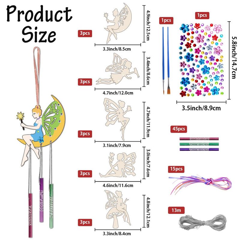 CHGCRAFT 15Set Fairy Painting Wooden Wind Chime Fairy Wind Chime Kit Wooden Arts and Crafts for DIY Paint Art Activity for Party Decoration Birthday Gifts