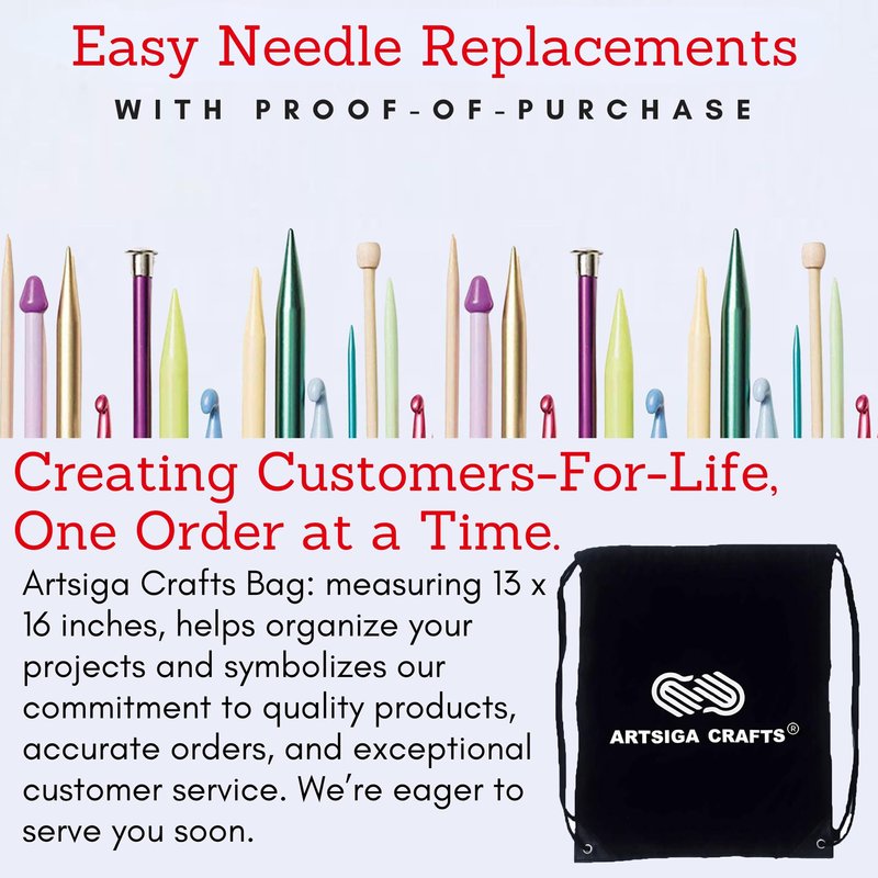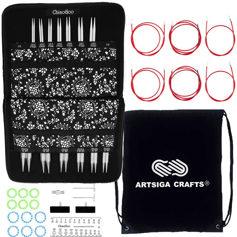 - Bundle includes 1 ChiaoGoo Twist Red Lace Interchangeable Circular Knitting Needle Set Complete: US Sizes 2, 3, 4, 5, 6, 7, 8, 9, 10, 10.5, 11, 13, 15 (Metric 2.75, 3.25, 3.5, 3.75, 4.0, 4.5, 5.0, 5.5, 6.0, 6.5, 8.0, 9.0, 10mm) with 1 Artsiga Crafts Project Bag 7500-C