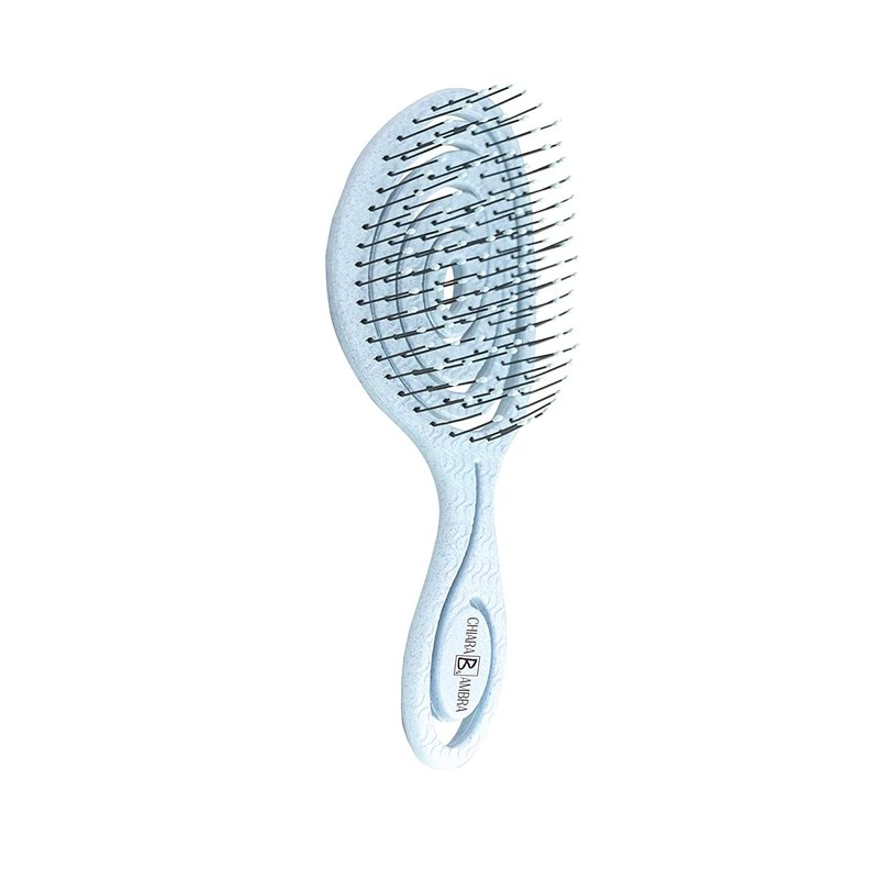 Chiara Ambra Organic Detangling Hair Brush for Women, Men & Children, Unique Spiral Hairbrush, Vented Hair Straightening Brushes for Straight, Curly & Wet Hair - Does not Pull on Hair – Light Blue