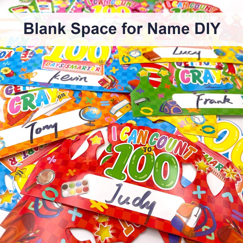 - 【Stylish design】the 100th day of school crowns are designed with bright color stationery patterns and some cute words such as 100 DAYS SMARTER,I CAN COUNT TO 100,GET YOUR CRAY ON;For more play fun,each of 100 day paper crown are designed with blank name space.