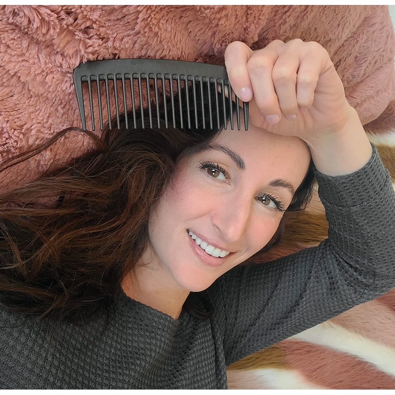 - Compact wide tooth comb with long tines, perfect for both men and women