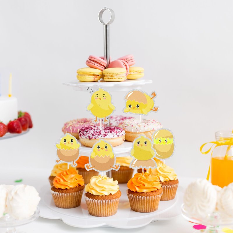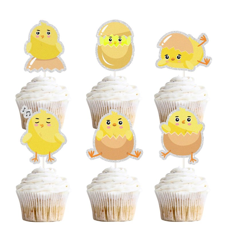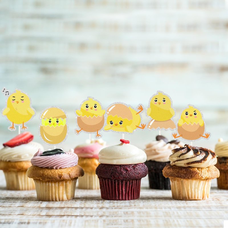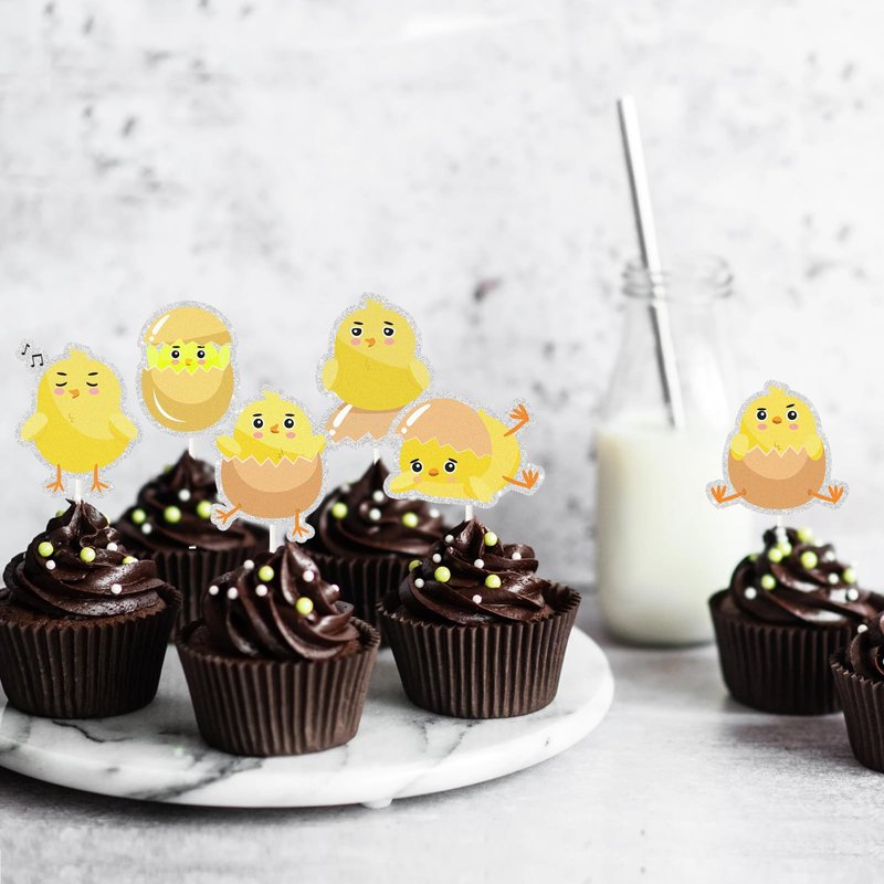 Chick Dessert Cupcake Topper,18pcs Farm Animal Baby Shower Children Birthday Party Decorations,Little Chick Sign Kids Easter Party Favors