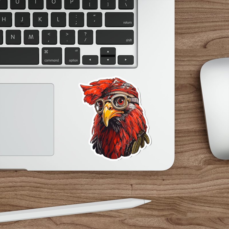 Chicken with Bandana Headband and Glasses Sticker Small Funny Funky Vinyl Window Waterproof Decal for Water Bottle Mug Passport Book Scrapbook Notebook Laptop Tumbler Skateboard Computer Size 4" Gift