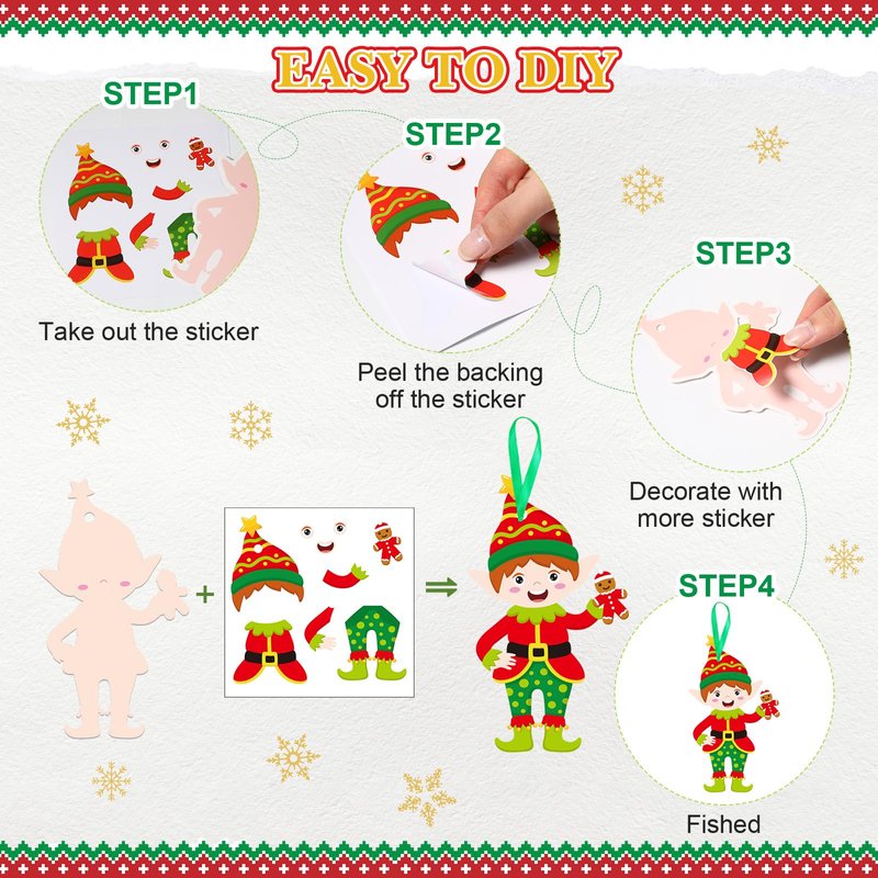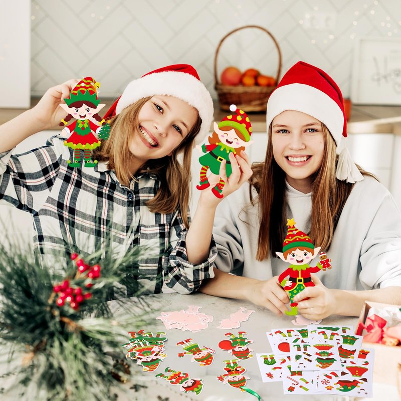 Chiisong 48 Pcs Christmas Craft Kits for Kids DIY Christmas Ornament Kit Make Your Own Xmas Arts and Crafts Xmas Elf Decor with Stickers for Xmas Holiday Class Home Party Favors Supplies (Elf)