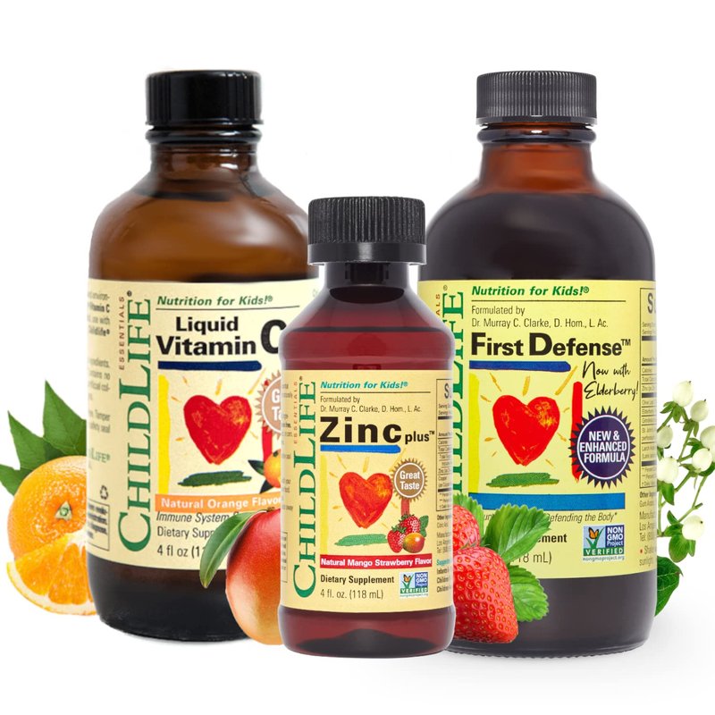 - IMMUNE SUPPORT BUNDLE - Contains First Defense, Vitamin C, & Zinc. These all-natural vitamins for kids are designed to boost your child’s immune system during colder seasons to keep them feeling healthy