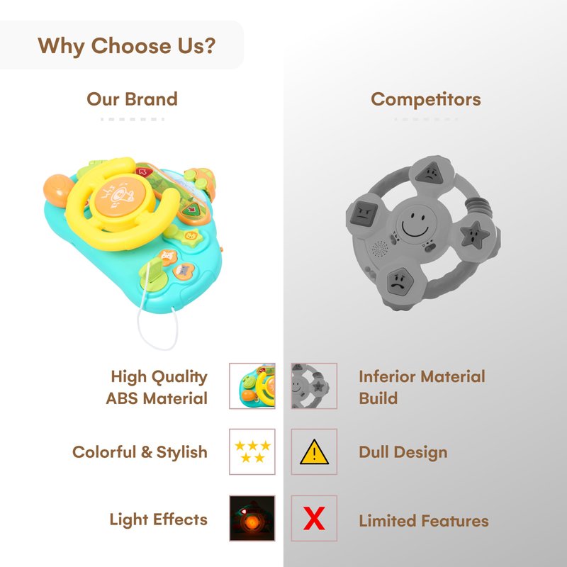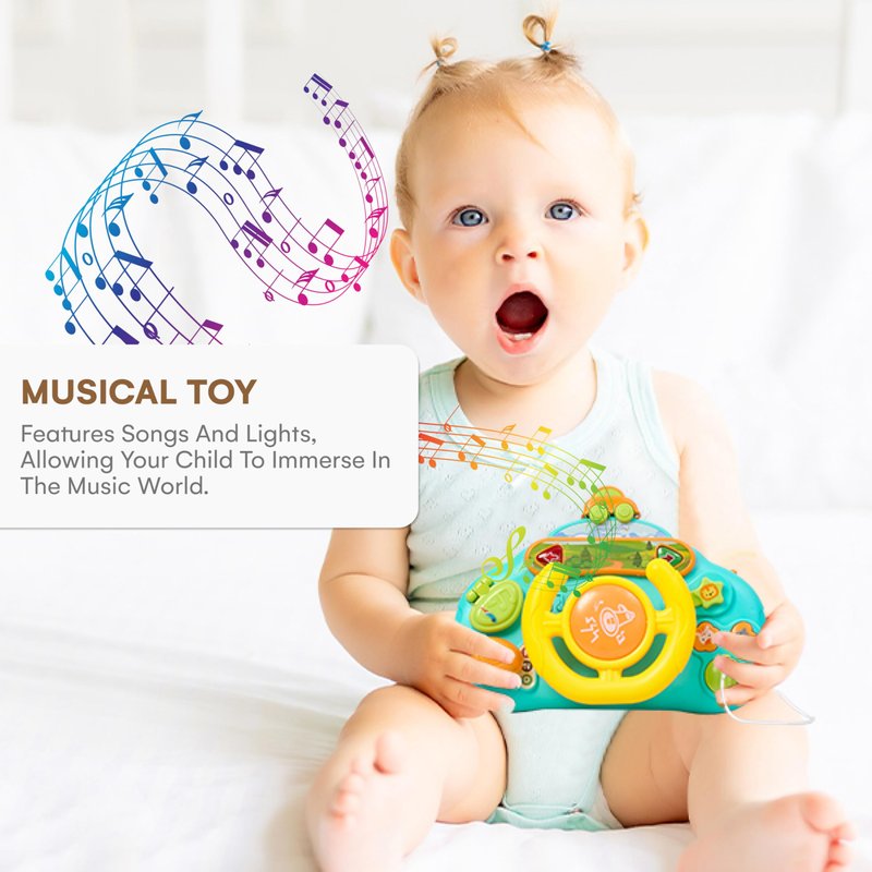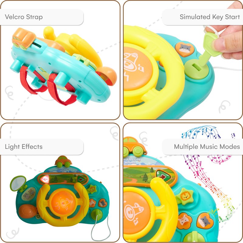 - MUSIC DRIVER FUN: With built-in music, our passenger steering wheel adds a delightful twist to the driving experience. This fake steering wheel keeps your child entertained and engaged while learning through play with this simulated steering wheel, the perfect wheel baby toy.
